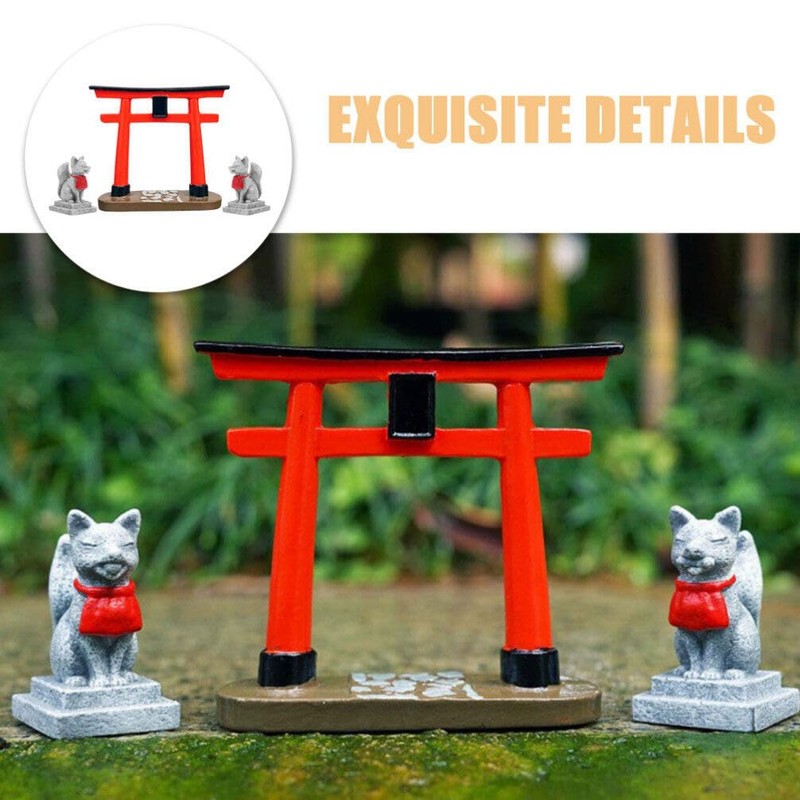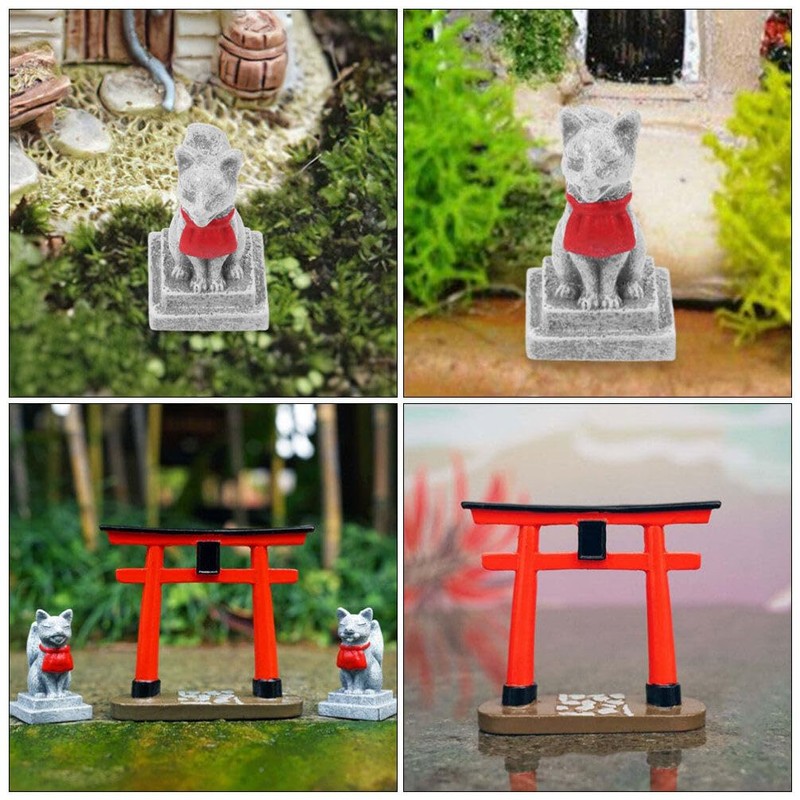 Toddmomy Japanese Torii Gate Miniature Red Shinto Torii Gate Fox Figurine Dol...