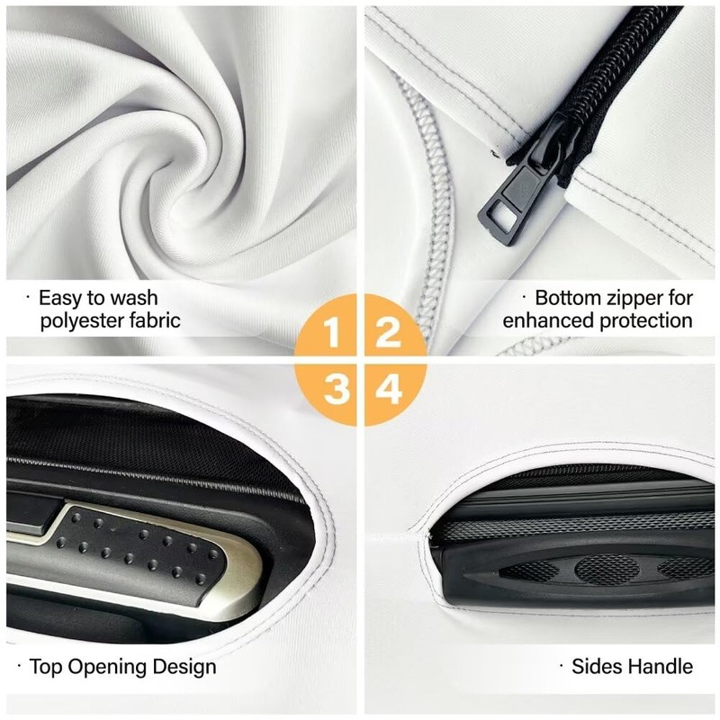 - 【Unique Design】: Opening at the top for retractable handle and carry handle, zipper at the bottom, which can give your Suitcase full protection. The elastic edge design can easily fit over the luggage body, ensuring that the luggage cover fits tightly and is not easy to slip off, and also easy to remove. Protect your luggage from dirt and scratches, so that your luggage is always safe during long trips.