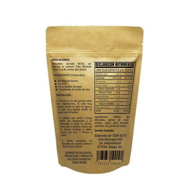 TODO KETO | Harina para Hotcakes Keto sin Gluten Low Carb 350g | Bajo en Carbohidratos, Sin Azúcar, Con Harina de Almendras y Fruta del Monje | Empaque Ecológico | Desayunos Saludables