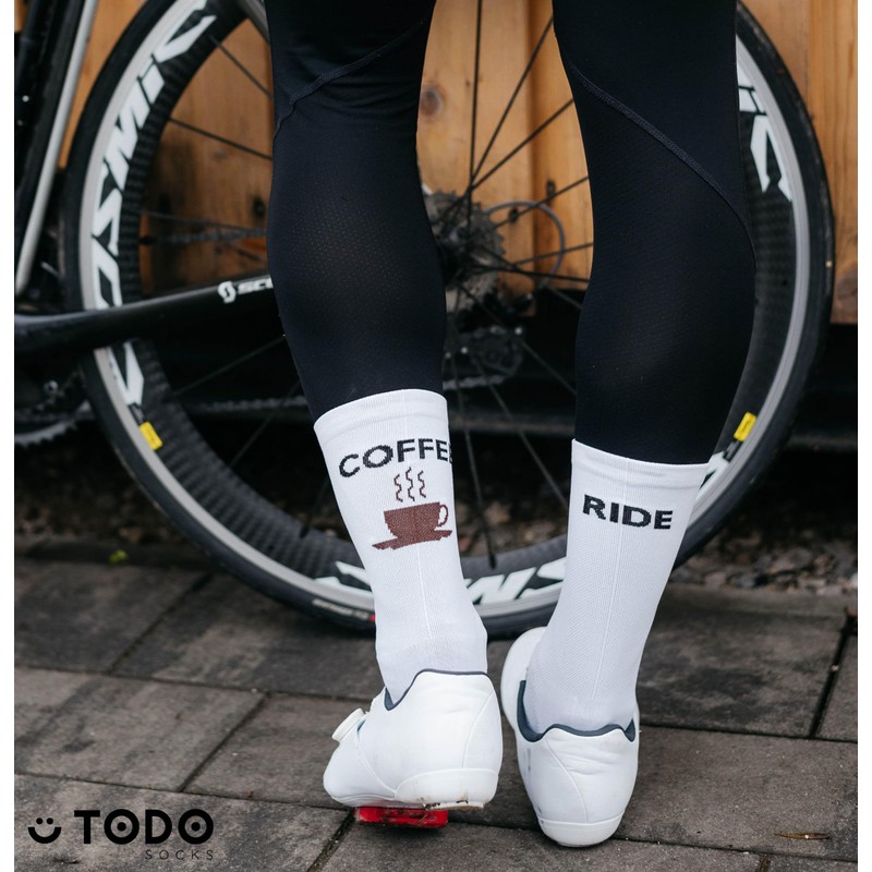 - TODO Active Cycling Pro – Breathable cycling socks for men and women. Crew length, good fit, thin cycling socks for blister-free cycling. Coffee bicycle socks with text – Coffee Ride.