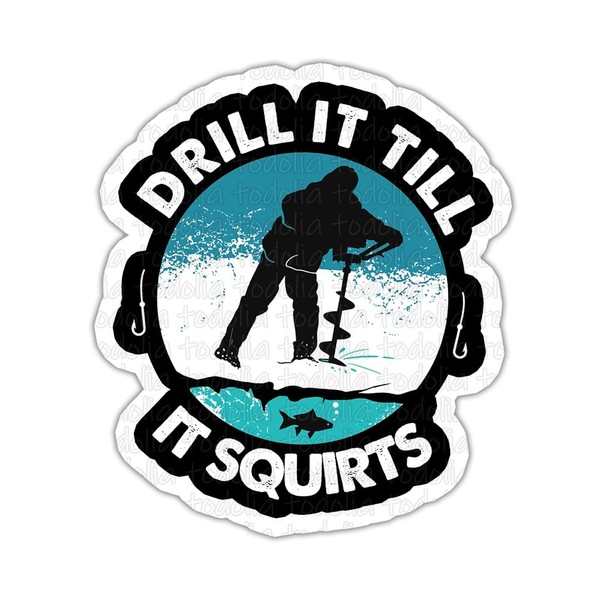 TODOLIA (3Pcs) Drill It Till It Squirts Sticker Funny Ice Fishing Sticker Adult Joke Sticker Gift Decoration Graphic for Travel Luggage Window Laptop Bottle Tumbler Journal Helmet Bumper- 3x4 Inch