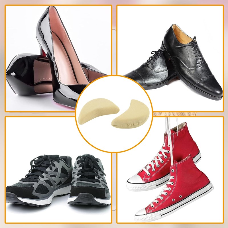 - 1. Shoe size adjustment: 7.5 x 3.5 x 1.8cm, apricot, 4 bags can be applied to shoes with large head space, can adjust the size of the shoe, prevent the problem of shoes slipping due to the shoes being too big, eliminating the discomfort of the foot in the shoes. Made of washable material that can be washed and used repeatedly