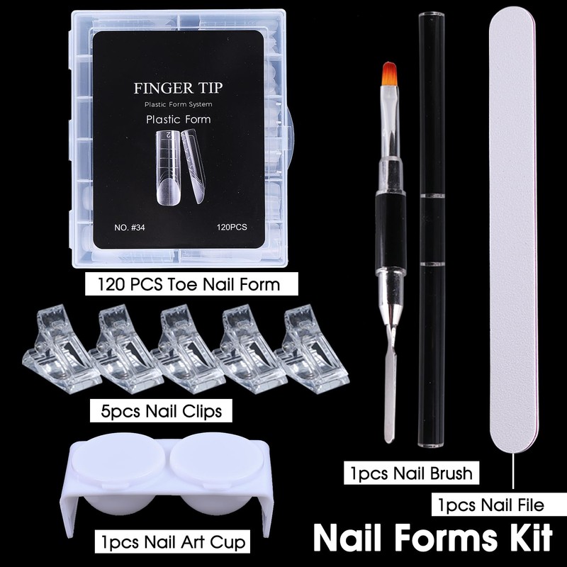- Valued Toenail Dual Forms Kit for Poly gel:Our Toe dual nail forms kit includes 120 pieces of nail molds , 1pcs uv gel nail art brush, 1pcs nail files, 5pcs clear nail clips, and 1pcs double cup, each clear nail moulds is separated by a small compartment, there are 12 compartments in total, easy for you to find the type of dual forms you want.