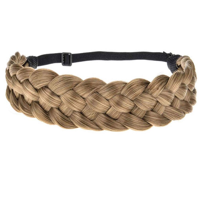 TOECWEGR 5 Strands Synthetic Hair Braided Headband Hairpiece Classic Chunky Wide Plaited Braids ElasticMulti-Color Headband Ladies Beauty Headwear (624#)