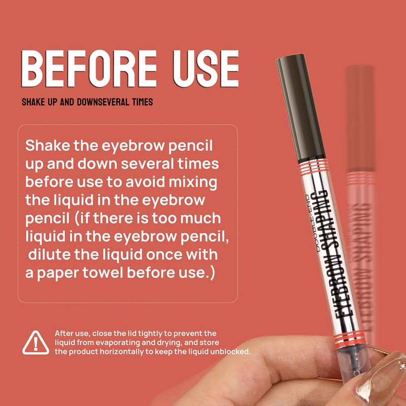 - DOUBLE HEAD DESIGN Our eyebrow pencil features a double head design that combines a liquid eyebrow pencil with an eyeliner, allowing versatile makeup looks with a convenient tool.