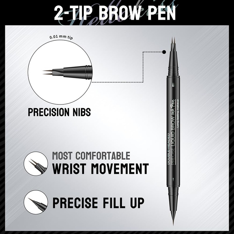 - DOUBLE HEAD DESIGN INCLUDES BROW BRUSH Our eyebrow pencil features a double head design that combines a liquid eyebrow pencil with an eyeliner, allowing versatile makeup looks in one convenient tool. With the built-in dual head eyebrow brush, you can blend and care for your eyebrows effortlessly.