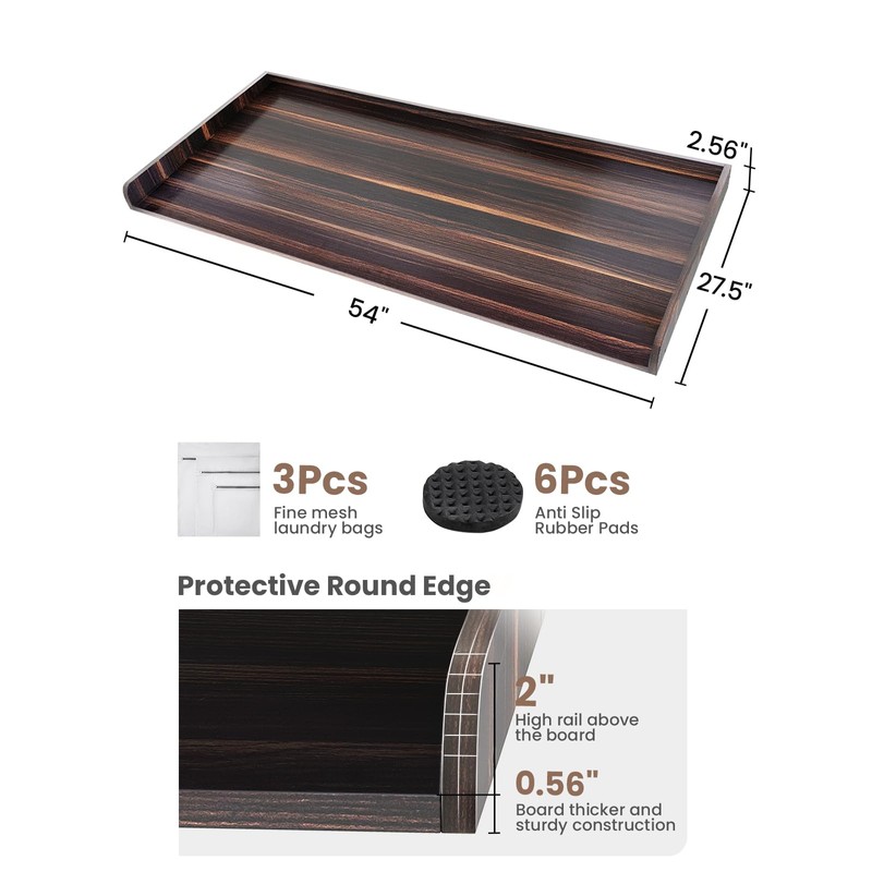 • GENEROUS DIMENSIONS - Measuring 54 x 27.5 x 2.56 inches, fit most of the washer and dryers on the market, our countertop provides ample space for all your laundry tasks. Whether folding clothes, sorting laundry, or placing essentials, this countertop accommodates it all with ease. Its large size ensures easy maneuverability, making your washing and drying experience hassle-free