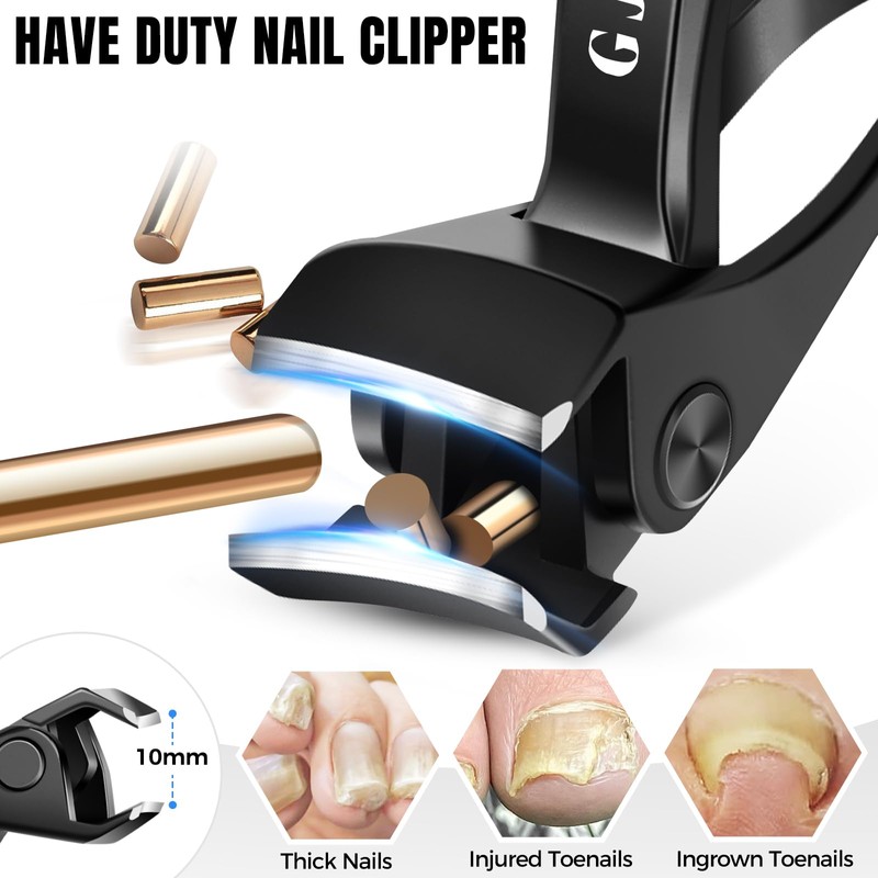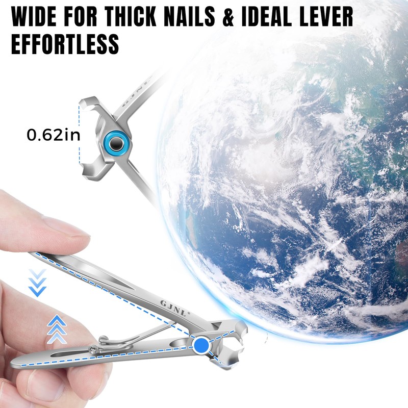 - WIDE JAW OPENING IDEAL FOR THICK NAILS - The wide jaws are about 6 times wider than the opening of a regular nail cutter and can open up to 16mm, making it easy to trim the thick and hard nails with ease. It is suitable for hard nails men or women, special for seniors.