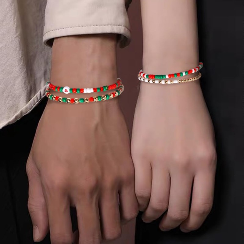 - FESTIVE BEAD BRACELET SET This exquisite Christmas bracelet set includes 10 beautifully crafted bead bracelets with a mix of elegant beads and ornate polymer clay letter pendants. Each bracelet embodies the festive spirit of the Christmas season, making it a delightful accessory for any Christmas party.