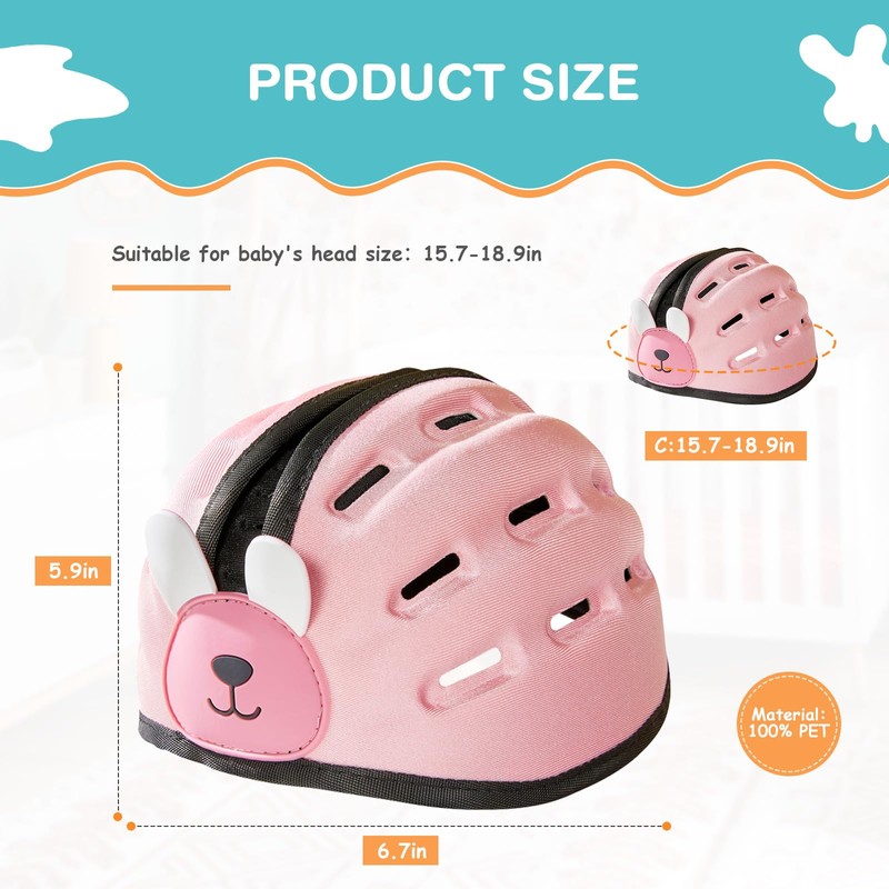 TOFFCAEA Baby Helmet for Crawling Walking, Baby Safety Helmet, Baby Head Protector, Collision-Proof, Ultra-Lightweight, Infant Helmet Expandable and Adjustable Age 6-24month (Pink Rabbit)