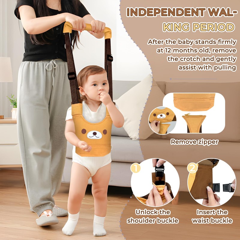 TOFFCAEA Baby Walking Harness, Handheld Baby Walking Helper for Toddlers with Detachable Crotch, Walk Support Assist Trainer Tool for 7-24 Month Old (Yellow Bear)