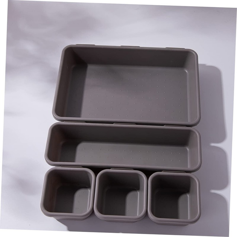 Tofficu 8pcs Plastic Drawer Desk Organizer Collapsible Storage Boxes Lockable Storage Case Compartments Tidy Organized Multifunctional Container (Light Grey)