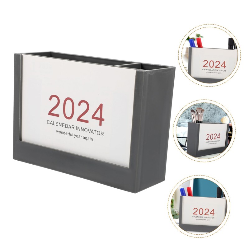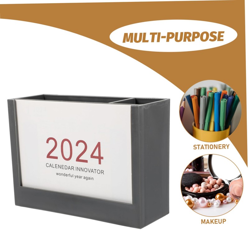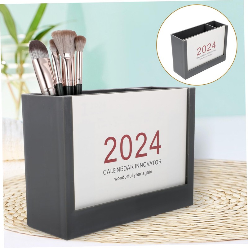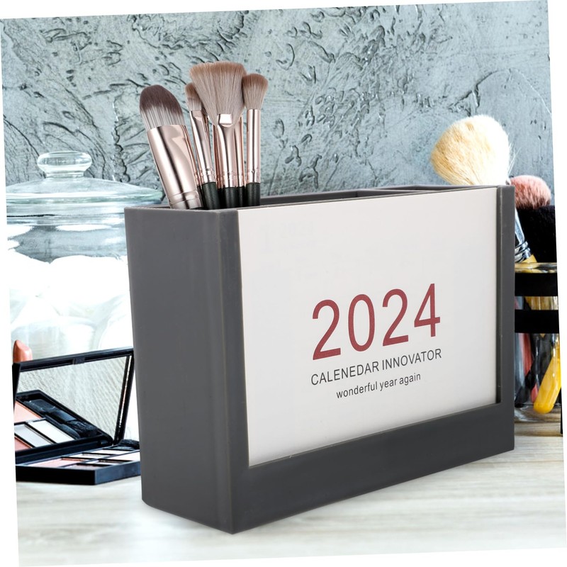 Tofficu Abs Paper Material Desk Calendar Pen Holder Makeup Brush Pencil Cup Storage for Office
