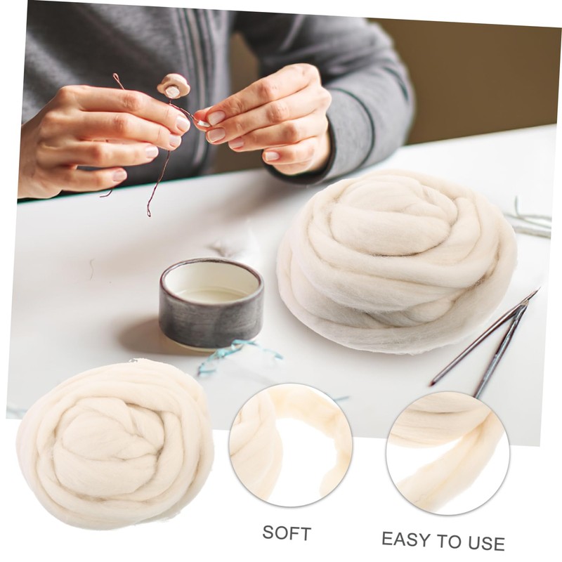Tofficu Natural Roving Wool Fiber for Needle Felting DIY Craft Material Milk White Versatile for Spinning Weaving Doll Making More for Beginners and Art Projects