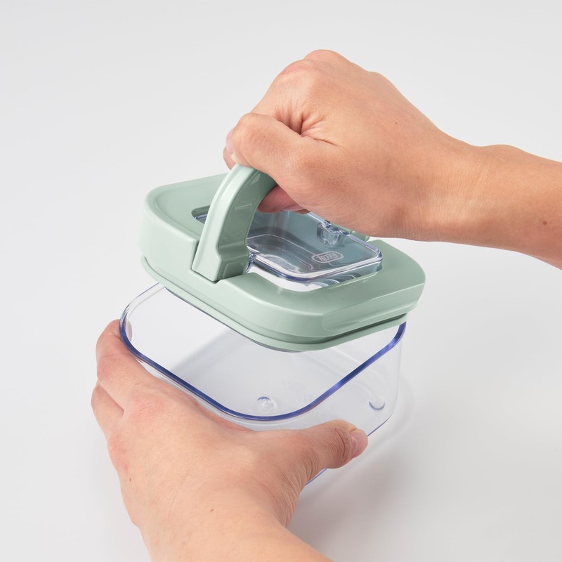 • Slim series of canisters with levers to keep your kitchen and fridge neat. Raise and lower the lever to open and close easily. A retro and cute Toffy color that you will want to collect
