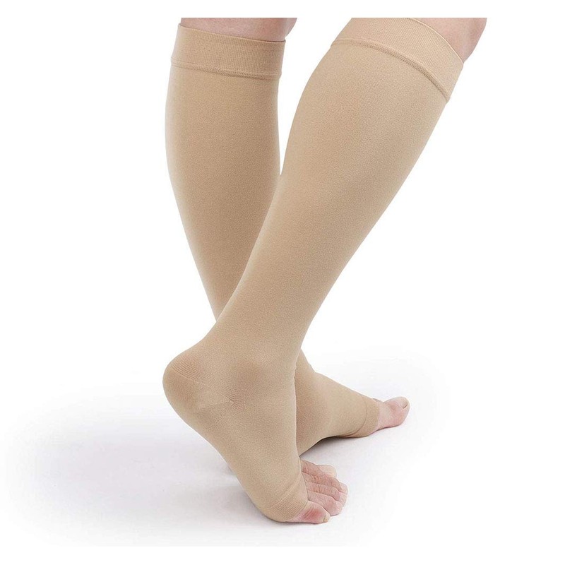 TOFLY® Compression Stockings (Pair), Medical Grade Firm Support 20-30mmHg, Opaque, Unisex, Open Toe Knee High Compression Socks for Varicose Veins, Edema, Shin Splints, Nursing, Travel, Beige XXL