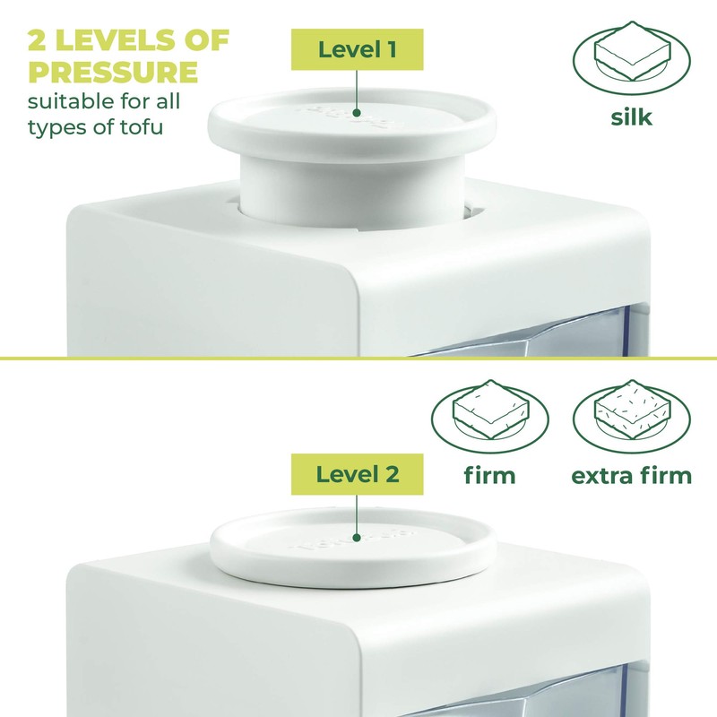- ✌2 PRESSURE LEVELS - Choose the desired pressure level for different tofu firmness. Use it for extra firm tofu or to gently drain silken tofu. This tofu maker keeps the shape of tofu blocks & also works as a paneer press or cheese press.