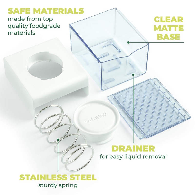 - 👌 REMOVABLE DRAINER - A star among tofu presses, this device has a translucent drainer at its base that conveniently contains all the drained water, guaranteeing no mess or no hassle! Enjoy pressed tofu with none of the drama!