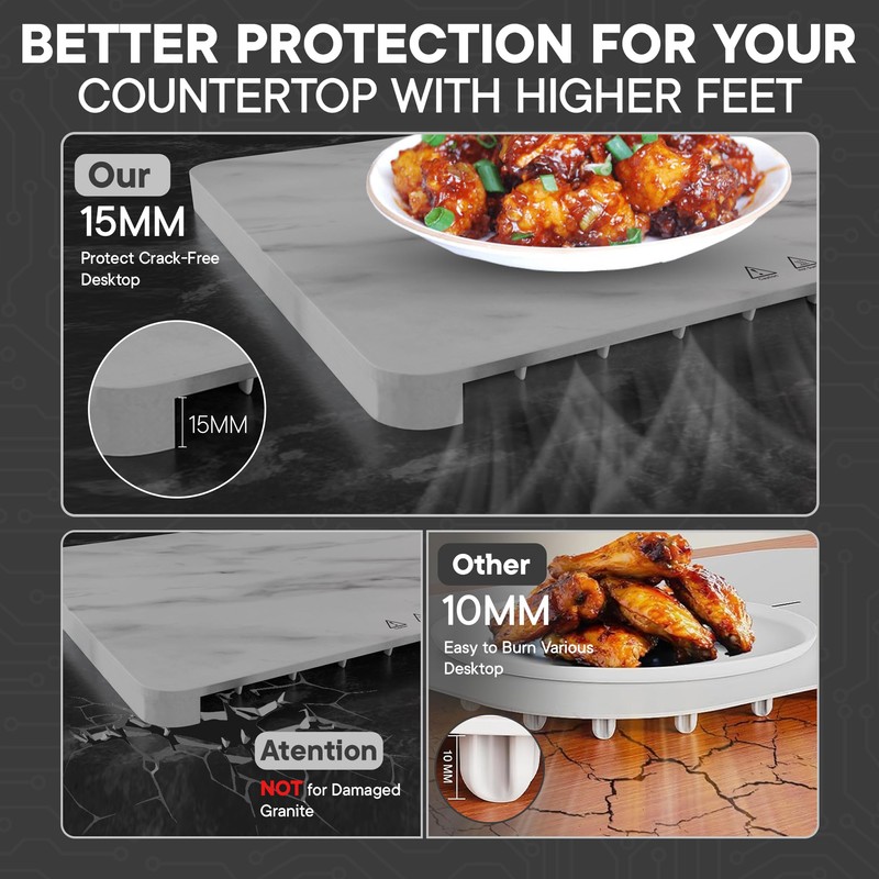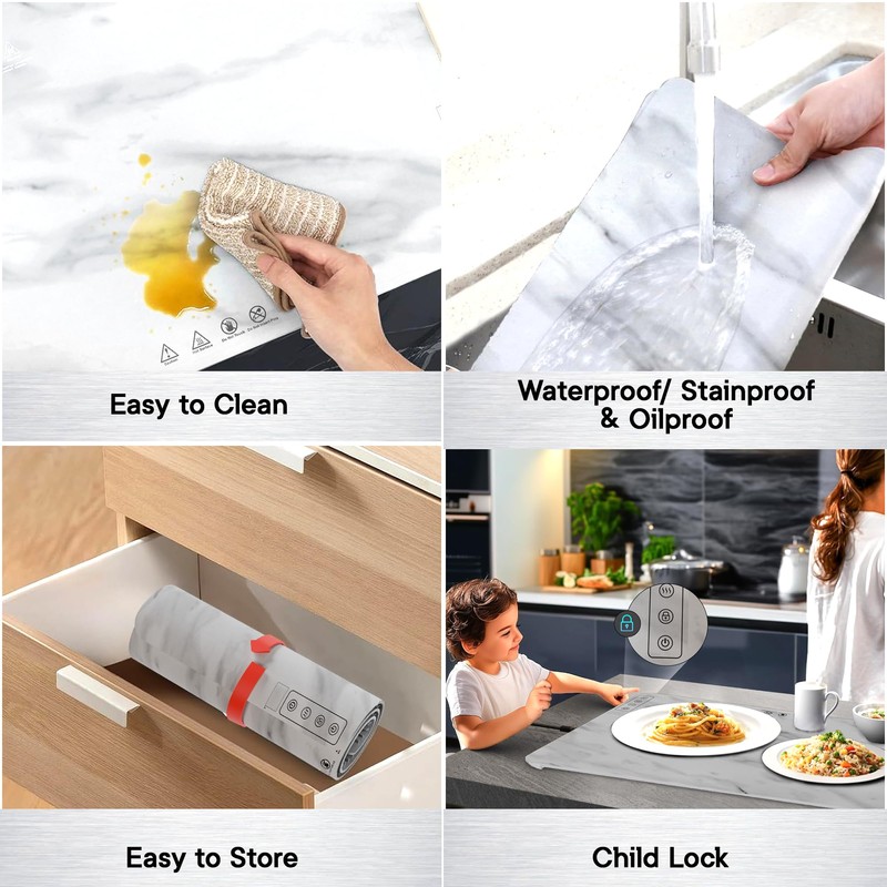- 🔒 Child Lock & Heat Protection – Designed with a child lock to prevent accidental mats activation and a heat dissipation system to protect your counter. Safe and reliable for everyday use pad.