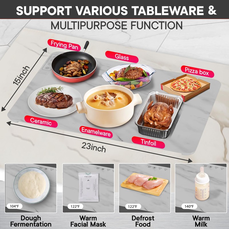 - 🍽️ Versatile & Compatible with Various Tableware – Perfect for warming meals, defrosting meat, fermenting dough, or heating baby bottles. Works with all heat-resistant tableware for multi-purpose use.