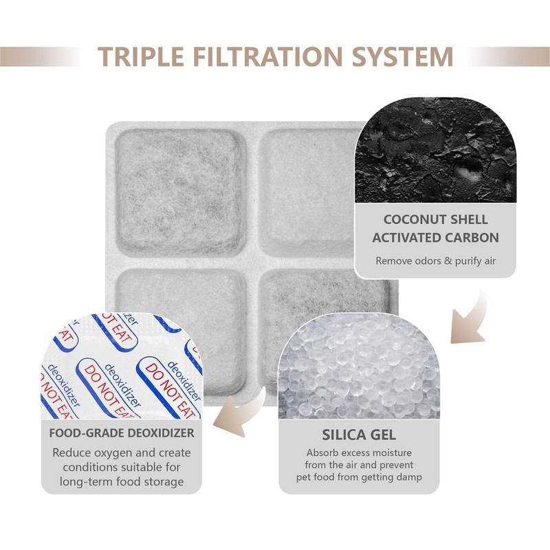 • REGULAR REPLACEMENT: In order to ensure the fresh of your pet food, please maintain the habit of changing the desiccant bag replacement every 2-4 weeks. Please store the desiccant bags in a dry environment for best results