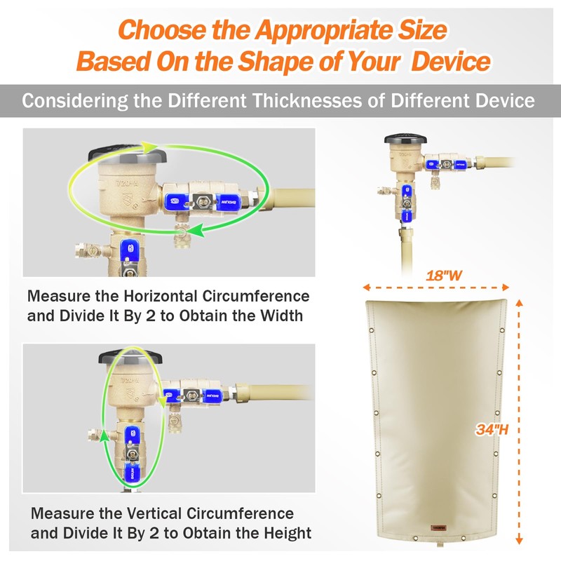 - 【Measure Before Purchase】The size of this sprinkler backflow cover for winter is 18"W x 34"H. Considering the Different Thicknesses of Different Equipment, measure the Horizontal Circumference and Divide It By 2 to Obtain the Width, and measure the Vertical Circumference and Divide It By 2 to Obtain the Height. Choose the appropriate size based on your device.