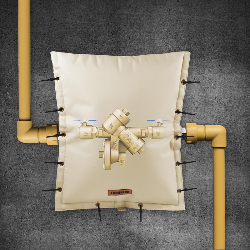 - 【Easy To Install and Stay Sturdy】Put the cover on your backflow preventer and pipes then close it with the Velcro Strips. We also prepared some extra nylon ties to fix it and keep your insulated pouch in place. The grommets also can be locked by Chain to prevent being taken away by theft, increasing security.