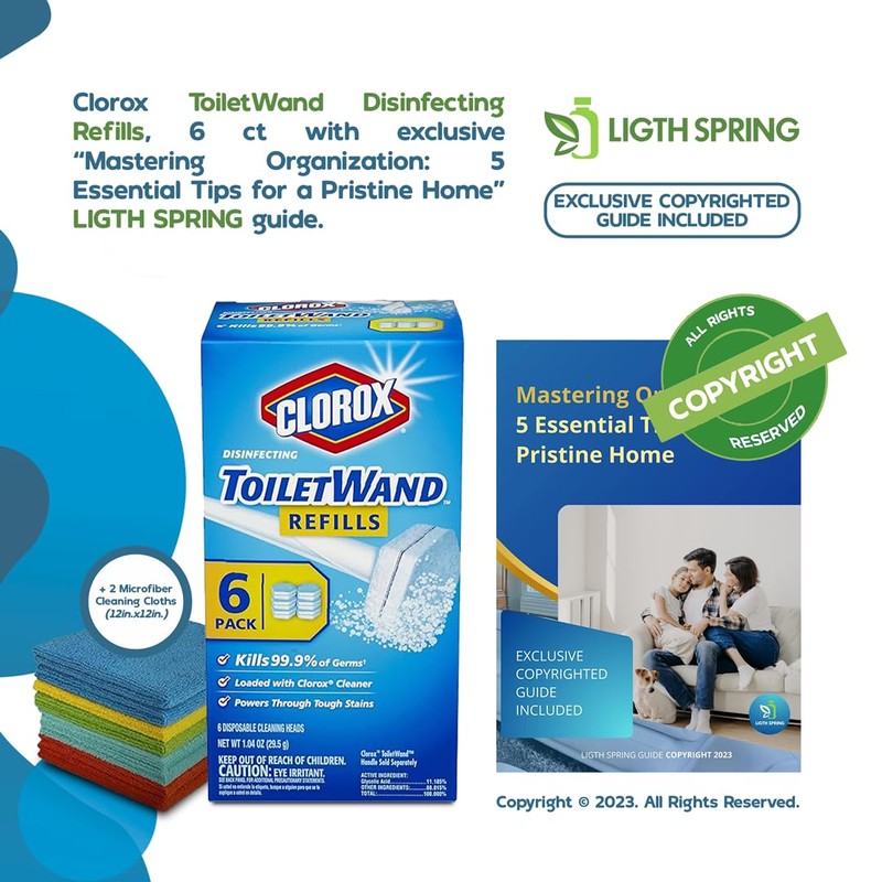 Toilet Bowl Wand Disinfecting Refill Heads 6 Count (2 Pack) - Microfiber Cleaning Cloths, Soft Absorbent Rag, (12in.x12in) LigthSpring Guide Mastering Organization (Pack May Vary)