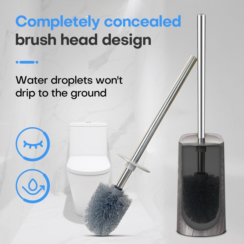 Toilet Brush and Holder Set,Stainless Steel Long Handle and Marble-Pattern Base for Bathroom Deep Cleaning,Space Saving for Storage,Drip-Proof,Dark Gray