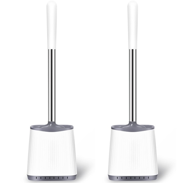 Toilet Brush, Silicone Toilet Brush and Holder, Flexible Toilet Bowl Brush Head with Ventilated Holder, Wall Mounted Compact Toilet Brush Set for Bathroom Cleaning (2, White)