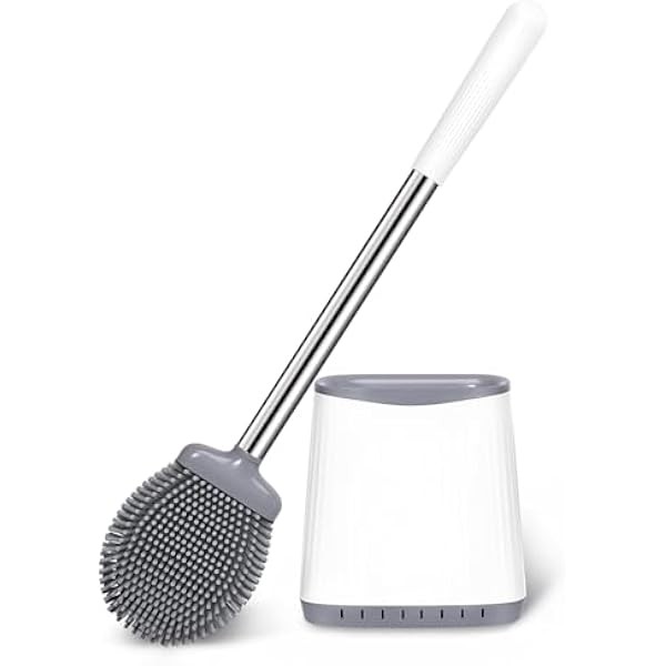 Toilet Brush, Silicone Toilet Brush and Holder Set, Flexible Toilet Bowl Brush Head with Ventilated Holder, Wall Mounted Compact Toilet Scrubber Set for Bathroom Cleaning (1, White)