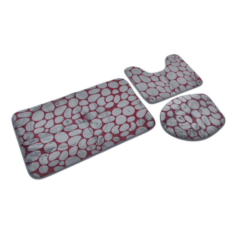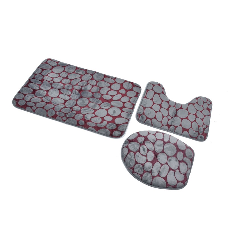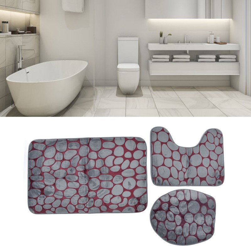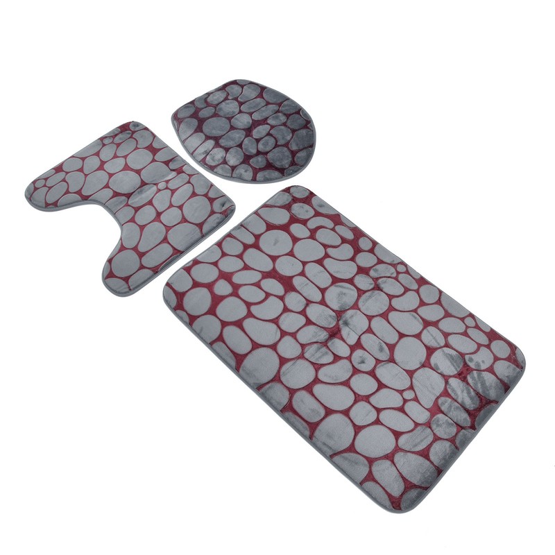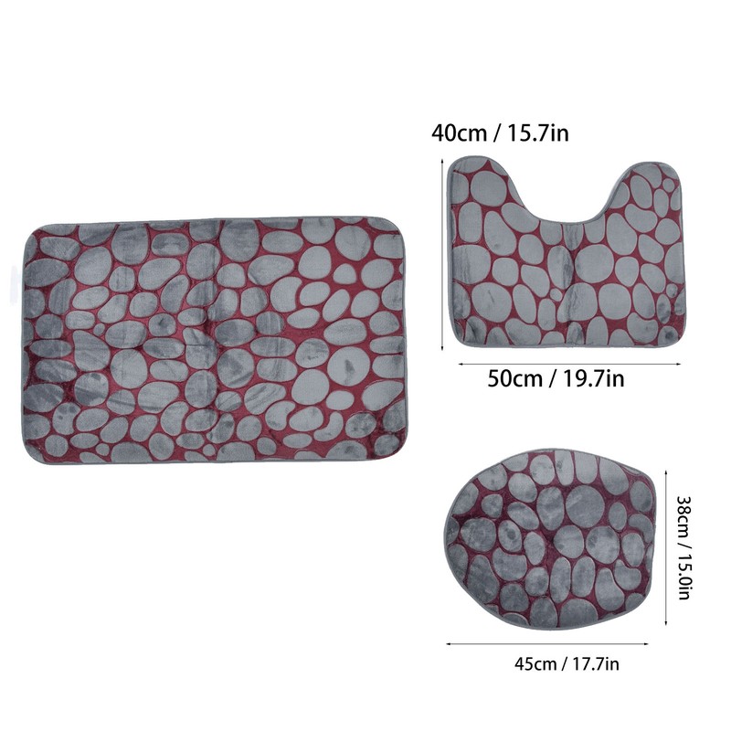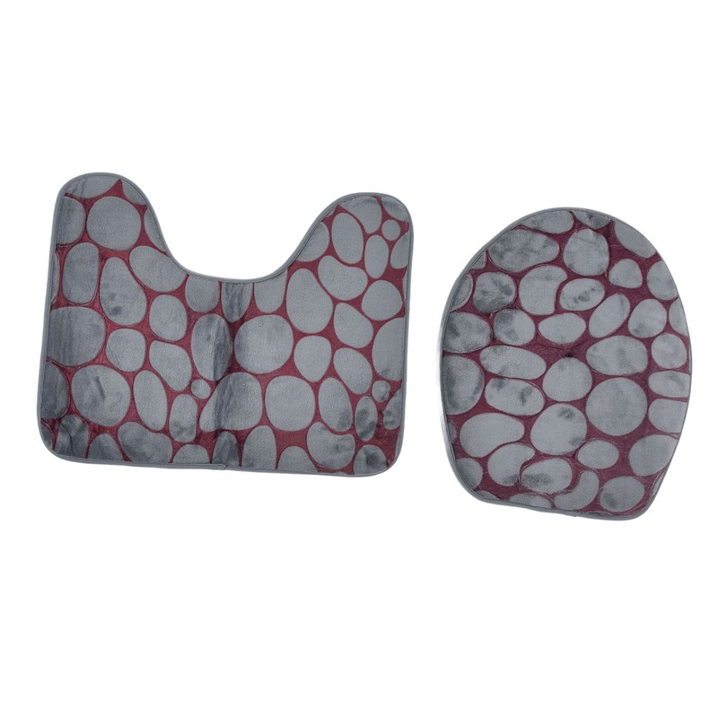 Toilet Mat Set Two Color Stone Texture Flannel Bathroom Rug Set HD Pattern Nonslip Bath Mat with Rubber Backing for Home