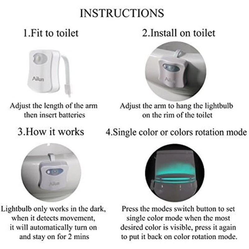 Toilet Night Light 2Pack by Ailun Motion Sensor Activated LED Light 8 Colors Cha