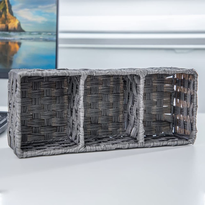 Toilet Paper Basket for Tank Topper,Woven Storage Box Cube Basket Bin Container, Shelf Cabinet(Grey 1pc) (14.17''L x 5.90''W x 3.93''H)