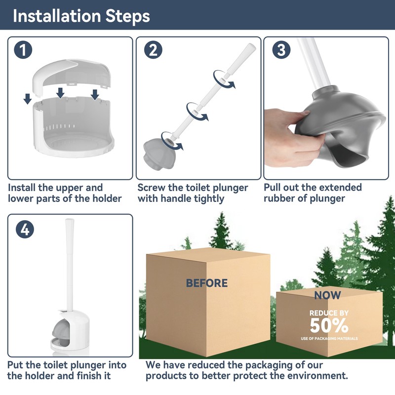 - Drip-free and Ventilated Plunger Holder: Designed to help keep bathroom floors clean & tidy, the base of our toilet plunger set can hold drips. And drips are collected by the ventilating base to dry by itself. Upgraded with ventilation, the toilet plunger holder allows drips to evaporate.