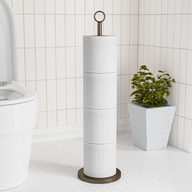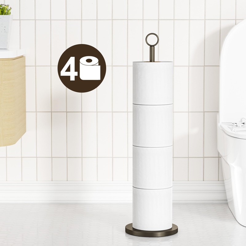 - 4 ROLL CAPACITY - This freestanding toilet paper holder is small but mighty, holds 4 rolls of 6" thick King/Jumbo toilet paper rolls. Never worry about running out of toilet paper again