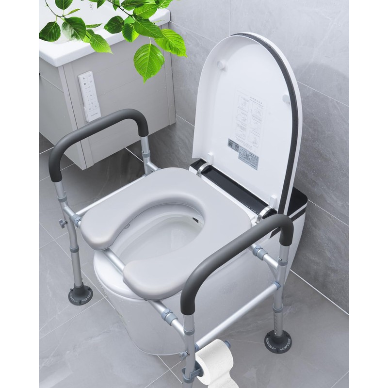 - Adjustable Width & Height: The raised toilet seat with handles offers customizable comfort with seat height adjustable from 19" to 25", handle height from 25.8" to 32", and internal width from 25" to 30". Designed to accommodate users of different heights and fit a wide range of toilet sizes.