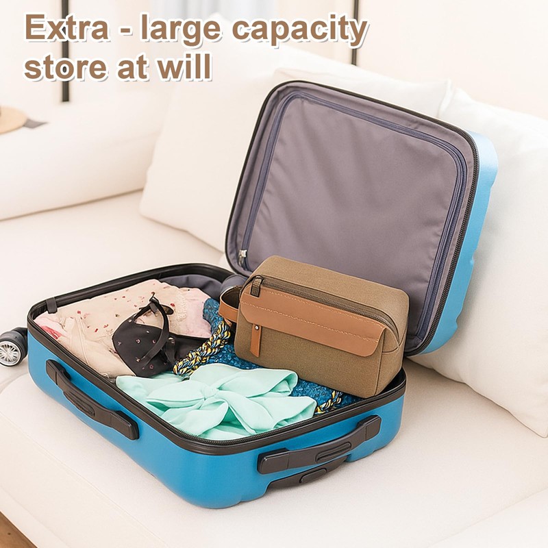 Whether for business trips or weekend trips, this men's toiletry bag combines timeless design with sophisticated function. Made from durable canvas with elegant faux leather details, it is the ideal companion for on the go.