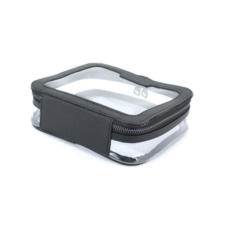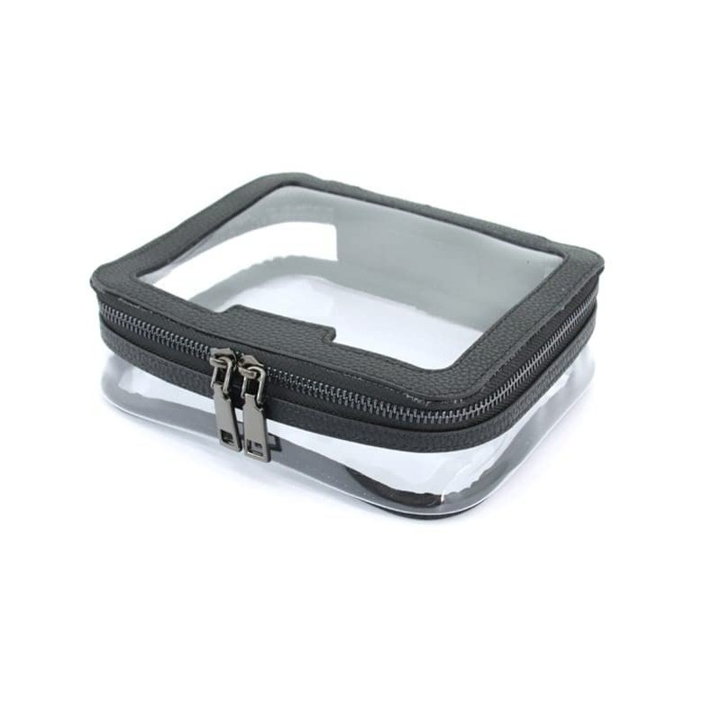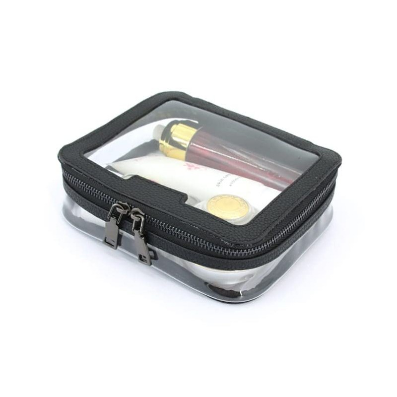 Toiletry Bag Waterproof Toiletry Travel Bag Clear PVC Zippered Cosmetic Bag Makeup Bag Clear Wash Bag Toiletry Organizer Makeup Bag for Travel Bathroom Men & Women. Vegan Leather (Black)
