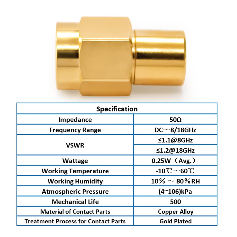 • DURABLE MATERIAL OF LOAD CONNECTOR ADAPTER All SMA male RF coaxial terminals are made of high quality brass for long service life. Good reliability, excellent performance and long service life.
