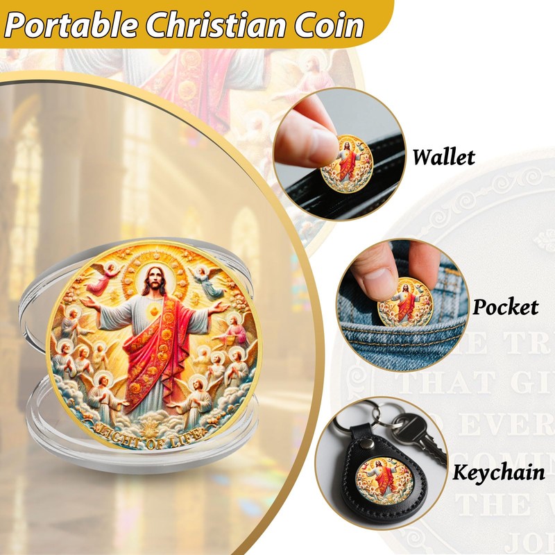 - Easy to Carry, Store, and Showcase: This Christian medallion comes with a protective acrylic coin capsule, making it simple to carry with you or securely store. Whether you keep it as a personal reminder of Jesus' light and guidance, display it on a shelf, desk, or add it to your collection, this faith-based coin serves as a meaningful symbol of faith. Ideal for daily inspiration, a heartfelt gift, or as part of your spiritual collection, it ensures you carry Jesus' presence with you wherever you go