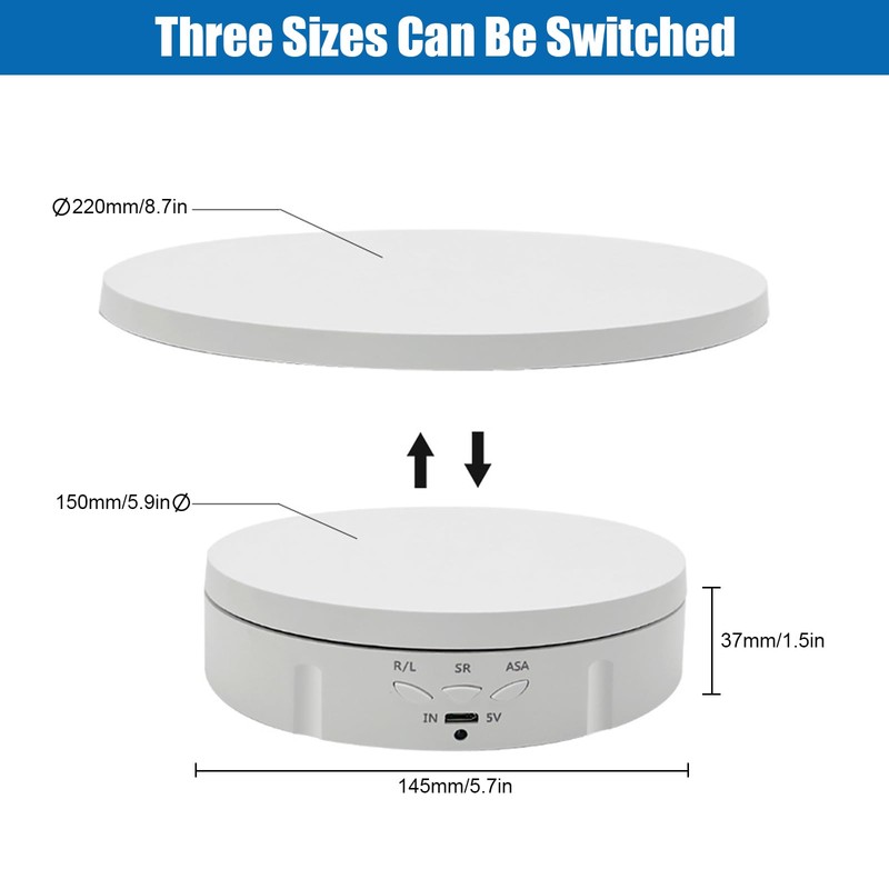 - 【Electric Rotating Display Turntable】 The 2-in-1 panorama rotating stand offers the possibility to freely switch between two sizes - approximately 15 cm and 22 cm - by exchanging the replacement plates. This versatile turntable allows you to use and adapt the disks according to your different needs.