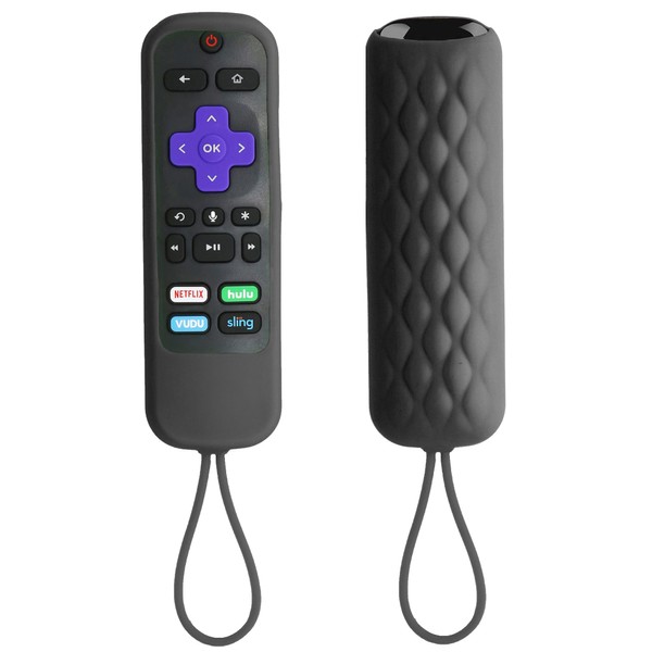 TOKERSE Remote Cover for Roku - Silicone Case Compatible with TCL Roku TV Remote, Express, Premiere, Streaming Stick, Strap & Lanyard - Black