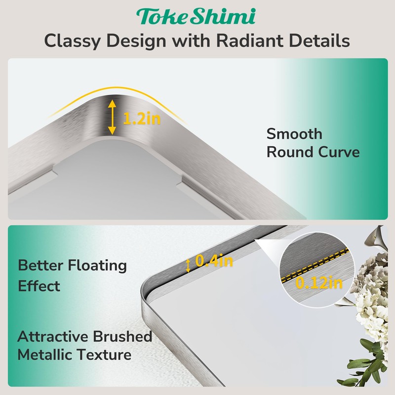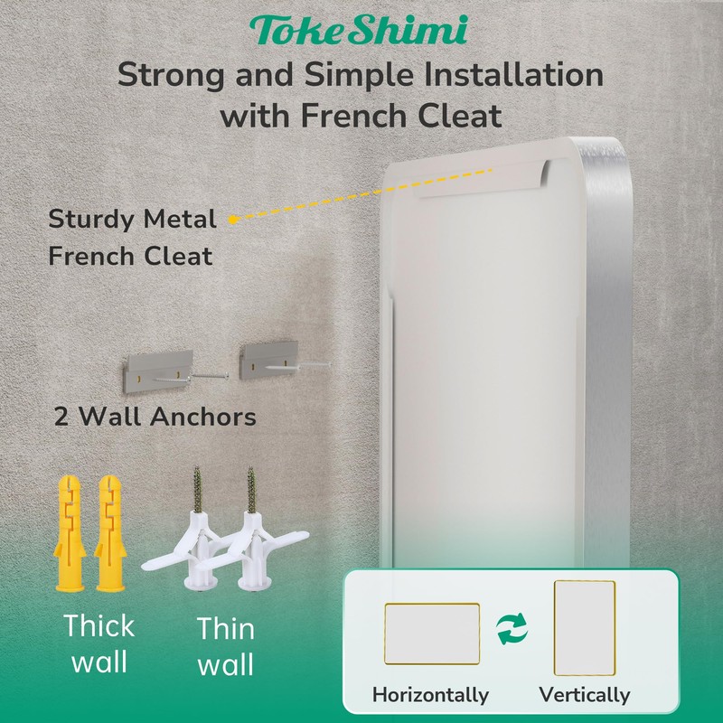 - 【Lightweight and Ready to Last Aluminum】Tokeshimi rectangle bathroom mirror is crafted with premium aluminum alloy, offering superior water-proof, moisture-proof, and dust-proof protection. The upgraded aluminum frame is not only stronger but lighter, ensuring years of reliable use in your bathroom