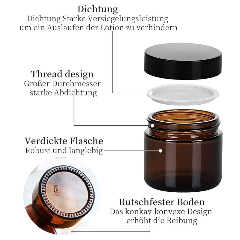 - ✅【Umweltfreundlich und langlebig】 Unsere Cremebehälter sind aus hochwertigem, transparentem und Mattiertes Glas gefertigt. Sie sind stark und langlebig, ungiftig und geruchsfrei, umweltfreundlich und wiederverwendbar. Sie sind sicher für Sie und Ihre Familie.
