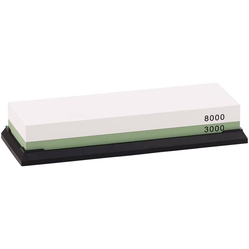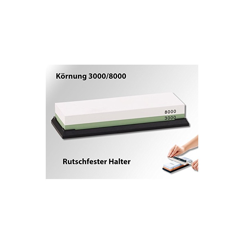 • 3000 grit: extra fine grinding for kitchen, meat, chopping knives and much more. Made of stainless steel, 8000 grit: fine grinding for kitchen, meat, mincer, sushi, razor and much more. With stainless steel, Damascus and forged blades