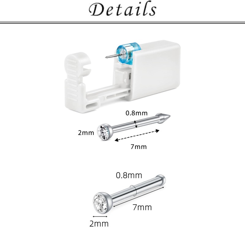 - Precision 20G Sizing: Each piercing gun comes pre-loaded with a 20G nose stud (7mm post length, 2mm ball end). The kit includes additional 20G replacement silver & gold studs (7mm length, 2-3.5mm top) for flexible wear options.