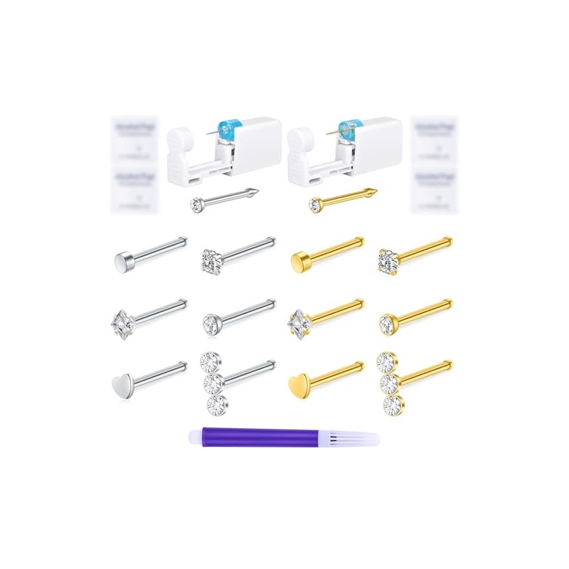 - Complete Nose Piercing Kit: Includes 2 piercing guns with 2 nose studs, 4 clean pads, 12 replacement nose pins (20G), 1 marker pen– everything needed for safe, at-home nose piercing.