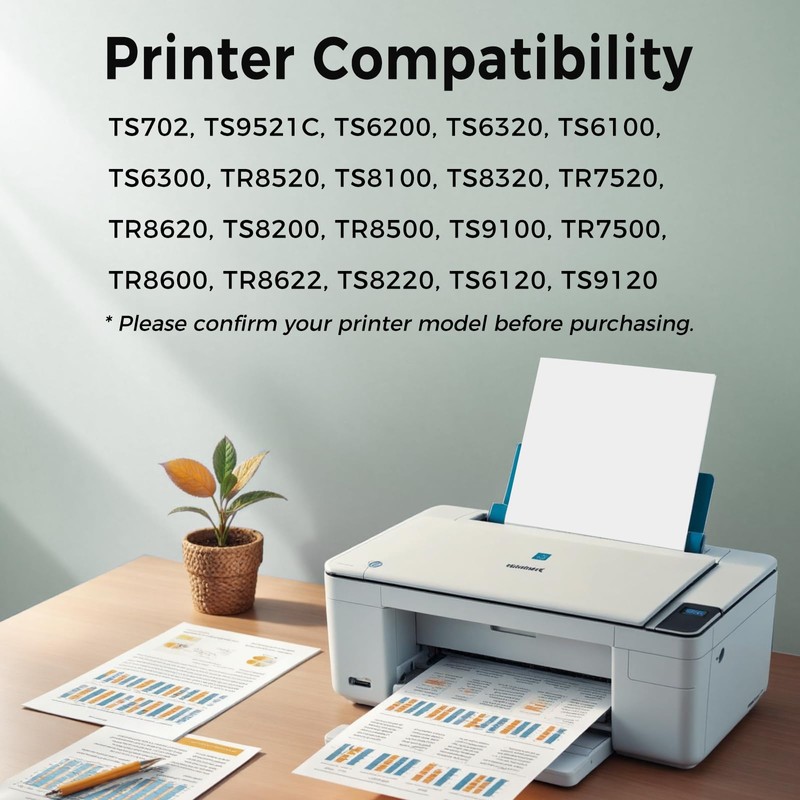 - Compatible with printer: Canon TR7520, TR7500, TR7620, Pixma TR8520, TR8500, TR8620, TR8622 Pixma TS6100, TS6120, TS6200, TS6220, TS6300, TS6320,TS9520, TS9521C, TS702, Pixma TS8120, TS8100, TS8220, TS8200, Pixma TS8322, TS8222,TS8320, TS8300, Inkjet Printer