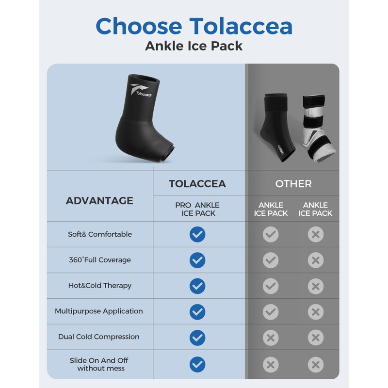 - REUSABLE GEL ICE PACK THAT STAYS COLD LONG ENOUGH: The Tolaccea ankle ice pack PRO is reusable and enduring. It stays cold after taken from freezer and provides essential cold therapy to reduce swelling and speed up recovery.